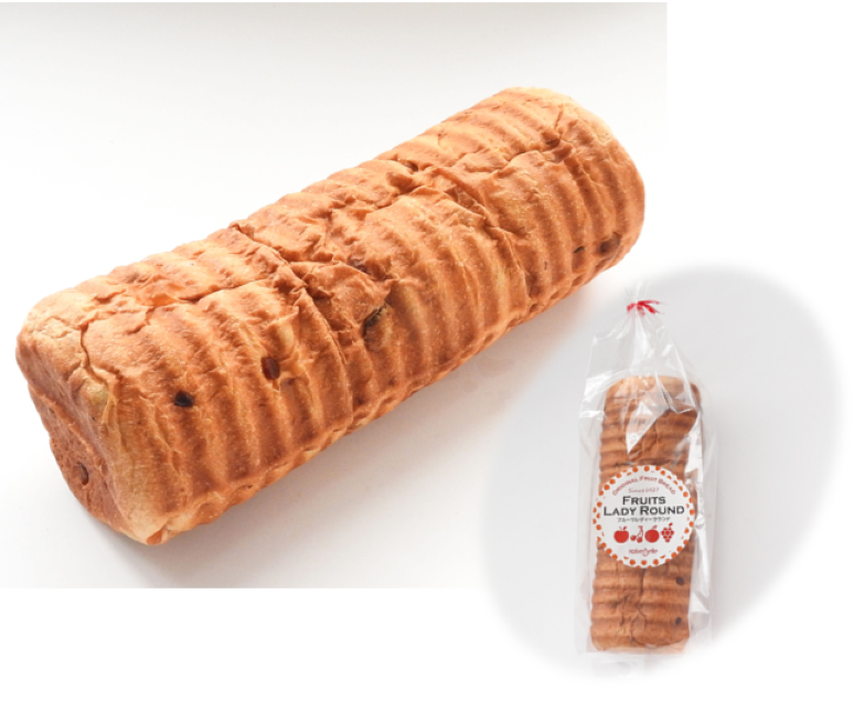 <ラウンドパンフルーツレディー>小麦粉(国内製造)、フルーツ砂糖漬(砂糖、オレンジピール、レーズン、水あめ、チェリー砂糖漬、洋酒、乾燥アップル)、バター入りマーガリン、ショートニング、発酵種、パン酵母、食塩、小麦グルテン、香辛料(シナモンパウダー)、果汁粉末/加工でん粉、酒精、増粘剤(アルギン酸エステル)、香料、着色料(カルミン酸)、(一部に小麦・乳成分・オレンジ・りんごを含む)